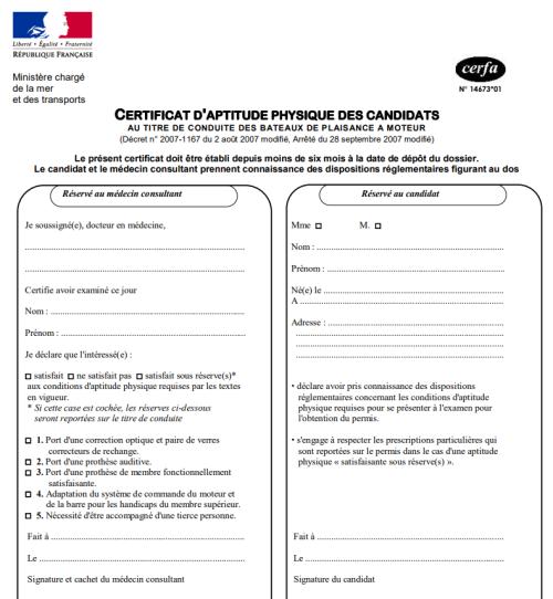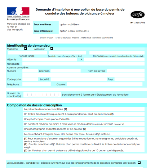 Données sont transmises à Archipel Bateau École et aux Affaires Maritimes uniquement